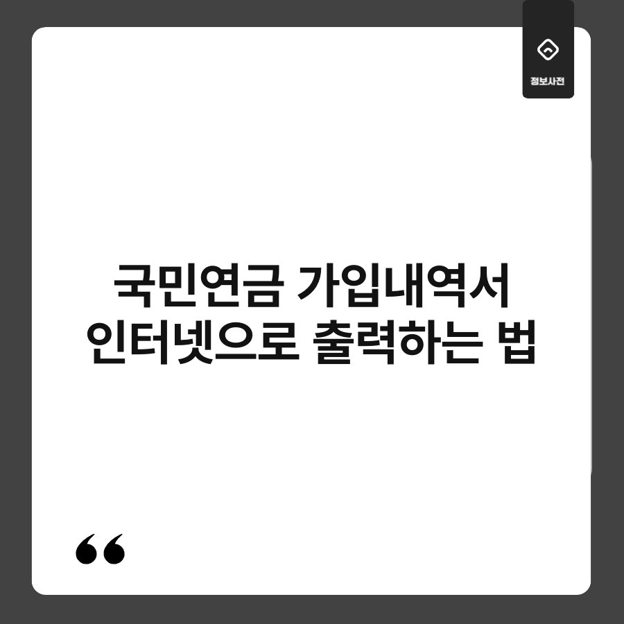 국민연금 가입내역서, 언제든지 필요하죠? 그런데, 어떻게 쉽게 출력할 수 있을까요? 인터넷으로 간편하게 출력하는 방법을 안내해 드리겠습니다. 어렵지 않으니 걱정하지 마세요. 이 글을 통해 지금 바로 국민연금 가입내역서를 출력하는 방법을 알아보세요.