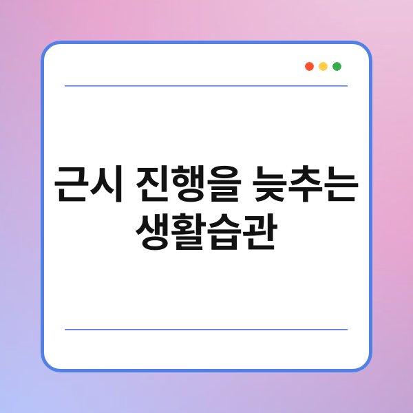 근시가 진행되면서 불편함을 느끼신 적 있나요? 요즘은 많은 사람들이 근시로 고생하고 있는데요. 이를 예방하고 진행을 늦추는 생활습관에 대해 알아보려고 해요. 우리가 일상에서 쉽게 실천할 수 있는 방법들이 많답니다. 이 글을 통해 근시 진행을 늦추는 생활습관을 함께 살펴보도록 해요!