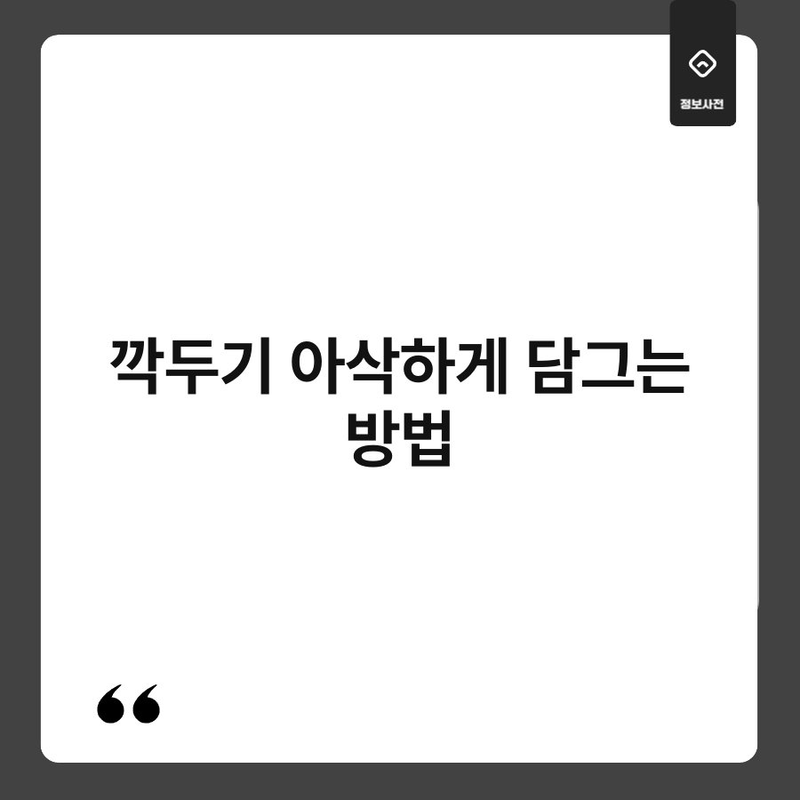 깍두기, 아삭한 식감이 입맛을 돋우는 최고의 반찬이죠. 하지만 막상 담그려면 어떻게 해야 할지 막막하신 분들 많으실 겁니다. 그렇다면 걱정하지 마세요! 오늘은 깍두기를 아삭아삭하게 담그는 방법을 소개해 드릴게요. 이 글을 통해 아삭한 깍두기를 만드는 비법을 모두 알아보세요. 이제 맛있는 깍두기를 집에서 손쉽게 만들어 볼까요?