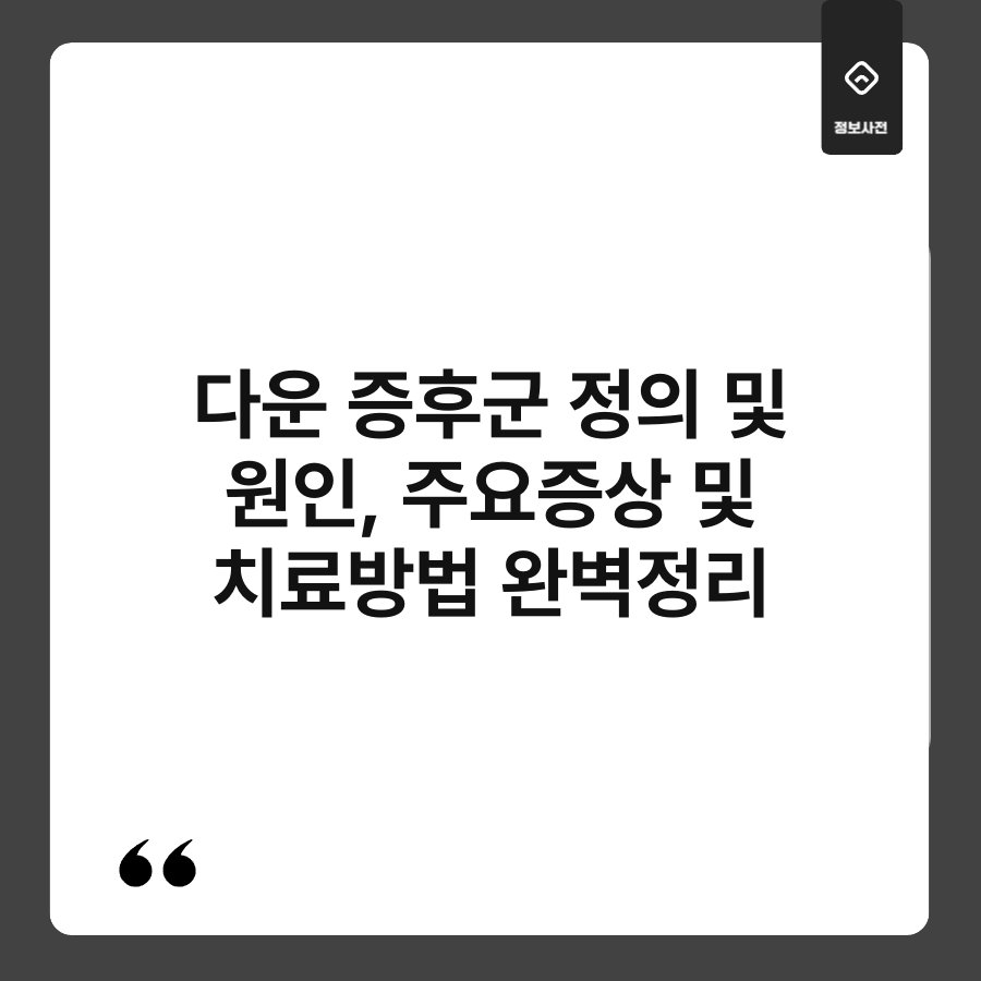 다운 증후군, 들어보신 적 있으신가요? 많은 분들이 이 용어를 알고 있지만, 정확한 정의와 원인에 대해서는 잘 모르시는 경우가 많습니다. 오늘은 다운 증후군의 정의와 원인, 주요 증상, 그리고 치료 방법에 대해 자세히 알아보려고 합니다. 이 글을 통해 다운 증후군에 대한 이해를 높이고, 도움이 될 만한 정보를 제공해드릴게요. 끝까지 함께 해주시길 바랍니다!