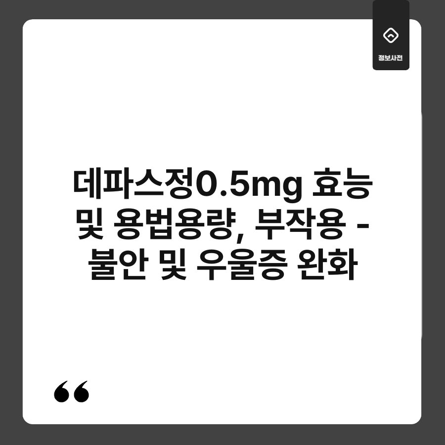 불안과 우울증, 정말 힘든 감정이죠. 일상에서 자주 느끼는 이 불편한 감정들, 어떻게 하면 완화할 수 있을까요? 오늘은 그런 고민을 덜어줄 수 있는 약물, '데파스정 0.5mg'에 대해 알아보겠습니다. 이 약물의 효능, 용법, 부작용을 통해 여러분이 좀 더 나은 선택을 할 수 있도록 도와드릴게요. 함께 알아보시죠!