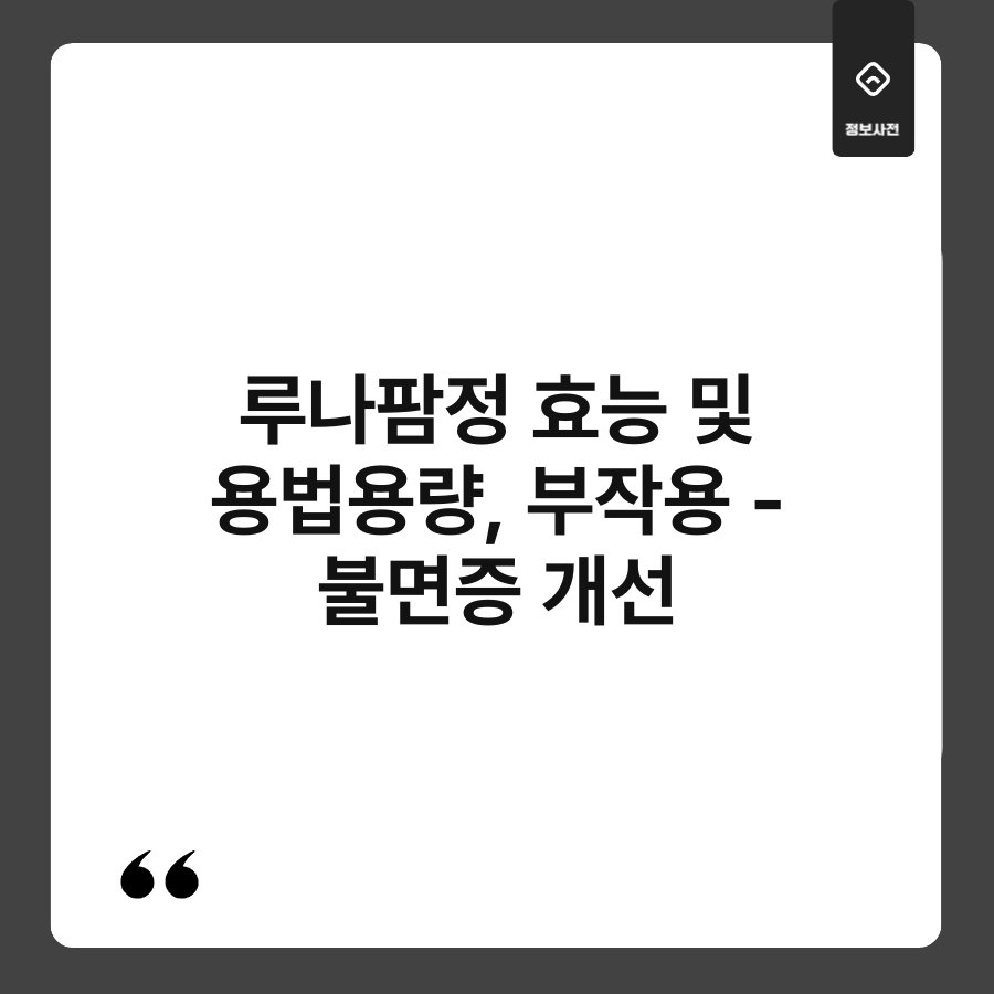 불면증, 정말 많은 분들이 겪고 있는 문제죠? 잠이 오지 않으면 다음 날 피로감이 쌓이고, 일상생활에도 영향을 미치게 됩니다. 그런 분들을 위해 루나팜정이라는 약물이 있습니다. 이 글에서는 루나팜정의 효능, 용법, 부작용을 자세히 살펴보도록 하겠습니다. 불면증을 개선할 수 있는 방법을 찾고 계신다면 끝까지 읽어보세요!