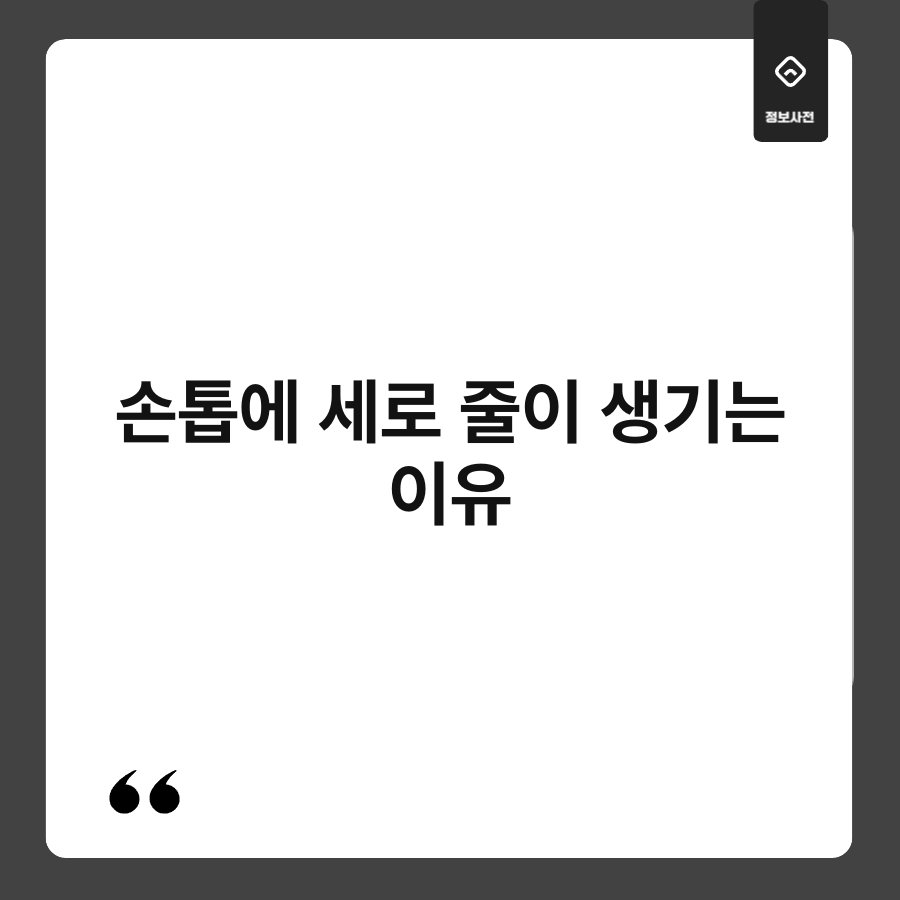 손톱에 세로 줄이 생기는 경험, 혹시 해보신 적 있으신가요? 이런 현상은 단순한 미용 문제가 아닙니다. 손톱에 나타나는 세로 줄은 여러 신체적 요인과 관련이 있을 수 있습니다. 오늘은 그 이유와 함께 관리 방법에 대해 알아보도록 하겠습니다. 손톱 건강, 소홀히 하시면 안 된답니다.