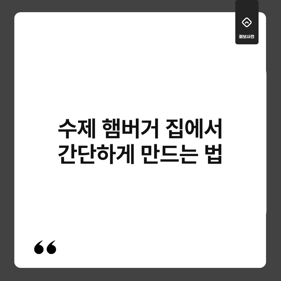 홈메이드 수제 햄버거, 상상만 해도 군침이 돌지 않으세요? 집에서 간단하게 만들 수 있다는 사실, 알고 계셨나요? 여러분도 손쉽게 맛있는 수제 햄버거를 만들 수 있습니다. 필요한 재료와 레시피를 공유해드릴게요. 함께 만들어보면서 특별한 순간을 즐겨보세요!