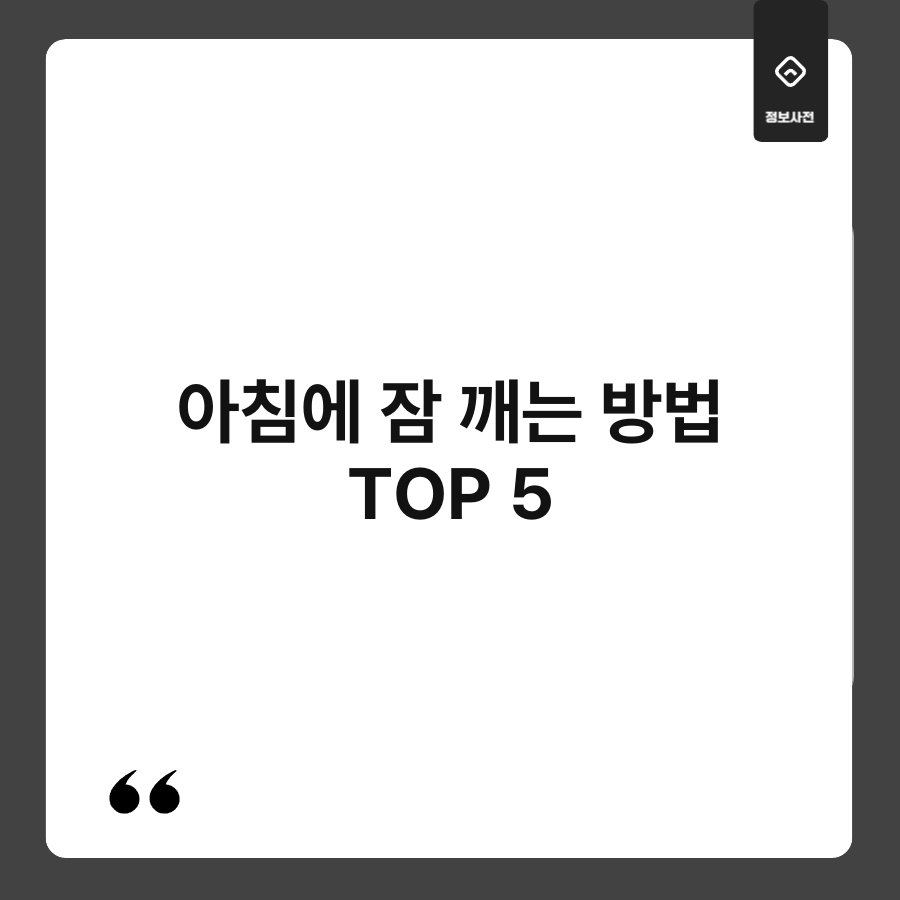 아침에 일어나기 힘든 분들, 정말 많으시죠? 피곤한 몸을 일으키고 잠에서 깨는 것이 그렇게 어렵게 느껴질 때가 있습니다. 하지만 걱정하지 마세요. 아침에 잠 깨는 방법을 알아보면, 훨씬 수월하게 하루를 시작할 수 있습니다. 지금부터 아침에 잠 깨는 TOP 5 방법을 소개해 드릴게요. 이 방법들을 통해 상쾌한 아침을 맞이해 보세요!