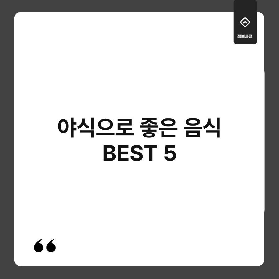 늦은 밤, 배가 고프지만 무엇을 먹어야 할지 고민이 되시죠? 야식은 언제나 유혹적이지만, 건강도 생각해야 합니다. 그런데 어떤 음식이 야식으로 좋을까요? 오늘은 야식으로 좋은 음식 BEST 5를 소개해 드리겠습니다. 이 글을 통해 건강하면서도 맛있는 야식을 선택하는 데 도움을 드릴게요.