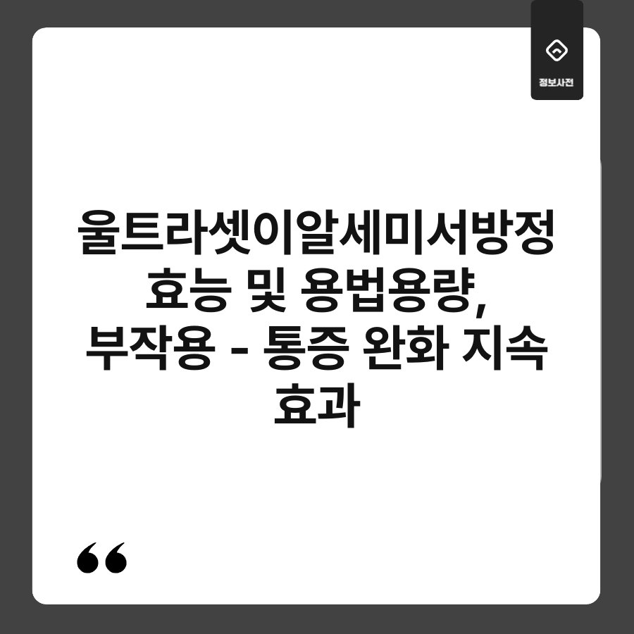 통증, 언제나 우리를 괴롭히는 존재죠? 특히 만성 통증을 앓고 계신 분들은 그 고통이 얼마나 힘든지 잘 아실 겁니다. 오늘은 통증 완화에 도움을 줄 수 있는 울트라셋이알세미서방정에 대해 이야기해보려고 합니다. 효능은 무엇이고, 용법용량은 어떻게 되는지, 그리고 부작용은 무엇인지 꼼꼼히 살펴보겠습니다. 마지막까지 읽어보시면, 울트라셋이알세미서방정이 여러분에게 도움이 될 수 있는 방법을 알 수 있을 거예요.