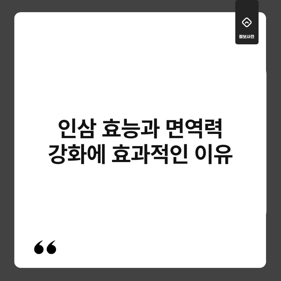 인삼에는 사포닌이라는 성분이 들어있어요. 이 성분은 면역력을 높이는 데 큰 역할을 합니다. 사포닌은 면역 세포를 활성화시켜 감염에 대한 저항력을 증가시킵니다. 그 결과, 우리 몸이 외부의 병원체에 맞서 싸우는 데 도움을 주죠. 이런 이유로 인삼이 면역력 강화에 효과적이라는 것이죠.