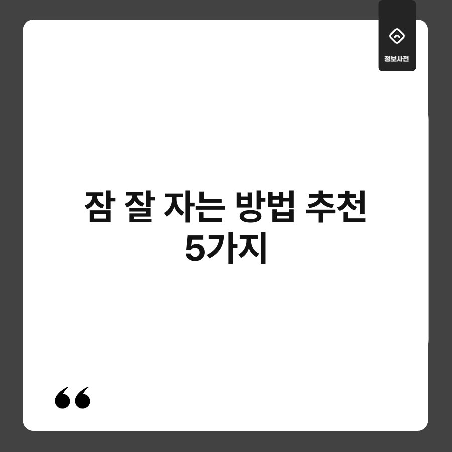 잠은 우리 삶의 질을 결정짓는 중요한 요소입니다. 하지만 바쁜 일상 속에서 잠을 제대로 자지 못하는 경우가 많죠. "하루에 몇 시간만 자면 괜찮을까?" 하는 생각이 드는 순간, 이미 수면의 중요성을 간과하고 있을지도 모릅니다. 오늘은 잠 잘 자는 방법을 다섯 가지로 정리해보려 합니다. 각 방법을 통해 보다 깊고 편안한 수면을 경험해보세요.