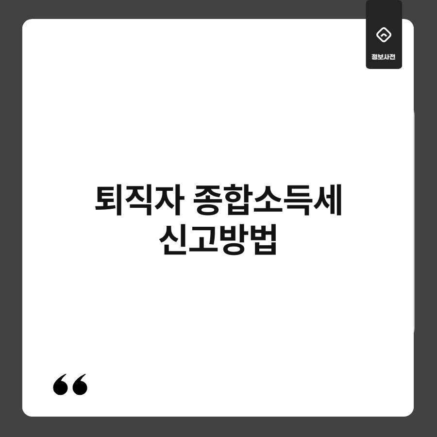 퇴직 후 종합소득세 신고, 어떻게 해야 할지 고민되시죠? 퇴직자라면 누구나 한 번쯤 겪는 이 문제, 적절한 신고 방법을 알고 계신가요? 이 글에서는 퇴직자 종합소득세 신고방법에 대해 쉽게 설명해 드리겠습니다. 세금 신고는 복잡하게 느껴질 수 있지만, 단계별로 차근차근 진행하면 어렵지 않습니다. 지금 바로 필요한 정보를 확인해 보세요!