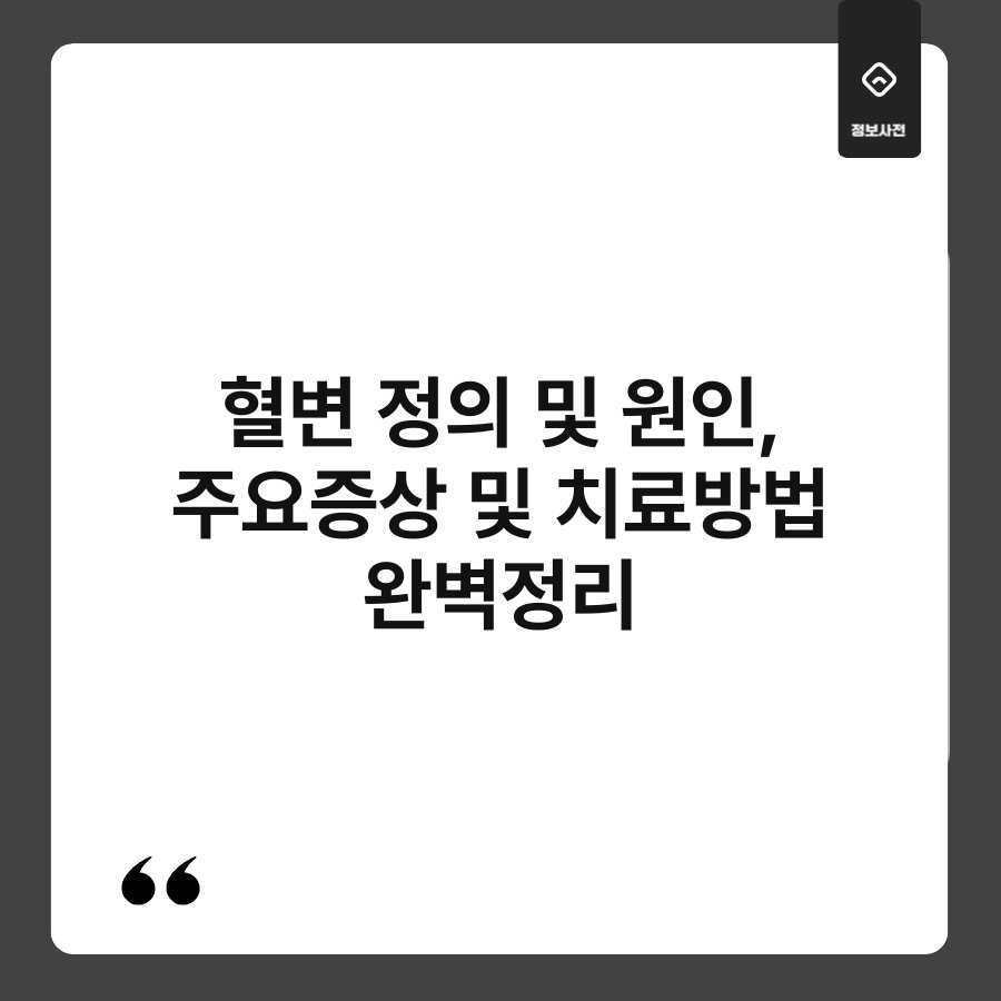 혈변, 이 단어를 처음 들었을 때 어떤 느낌이 드셨나요? 혹시 당황스럽거나 불안하게 느껴지셨을 수도 있습니다. 혈변은 단순한 증상이 아니라 여러 질환의 신호일 수 있기 때문에, 그 원인과 증상을 정확히 아는 것이 중요합니다. 이 글에서는 혈변의 정의와 원인, 주요 증상 및 치료 방법에 대해 자세히 알아보겠습니다. 혈변에 대해 알고 계신다면, 상황을 보다 효과적으로 대처할 수 있을 것입니다.